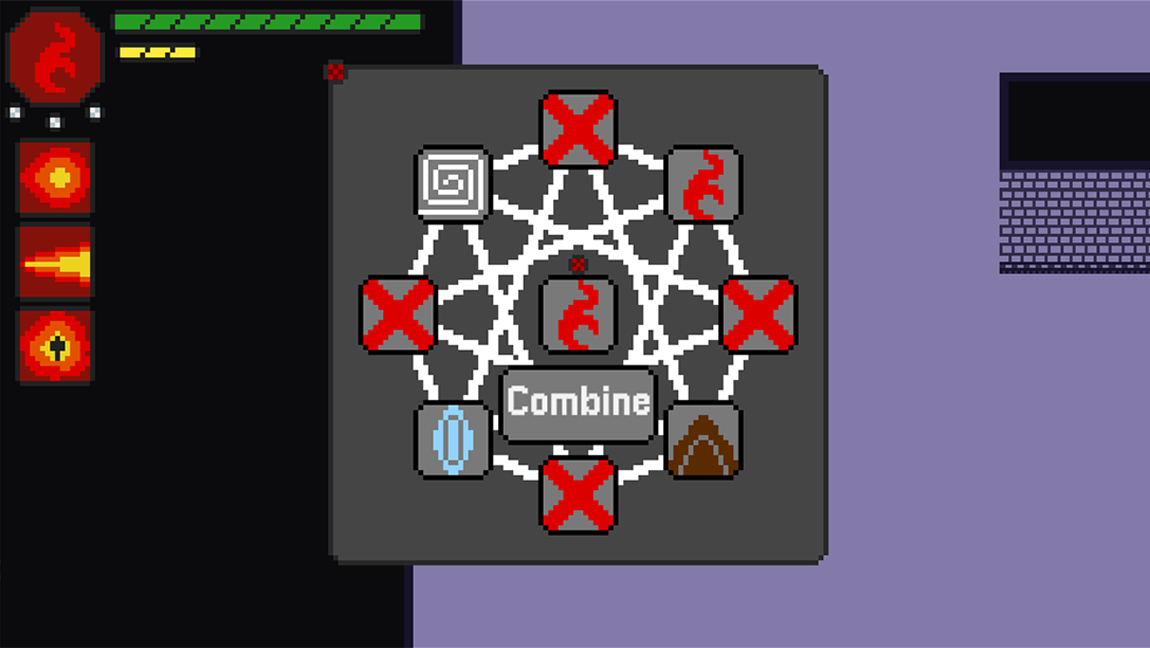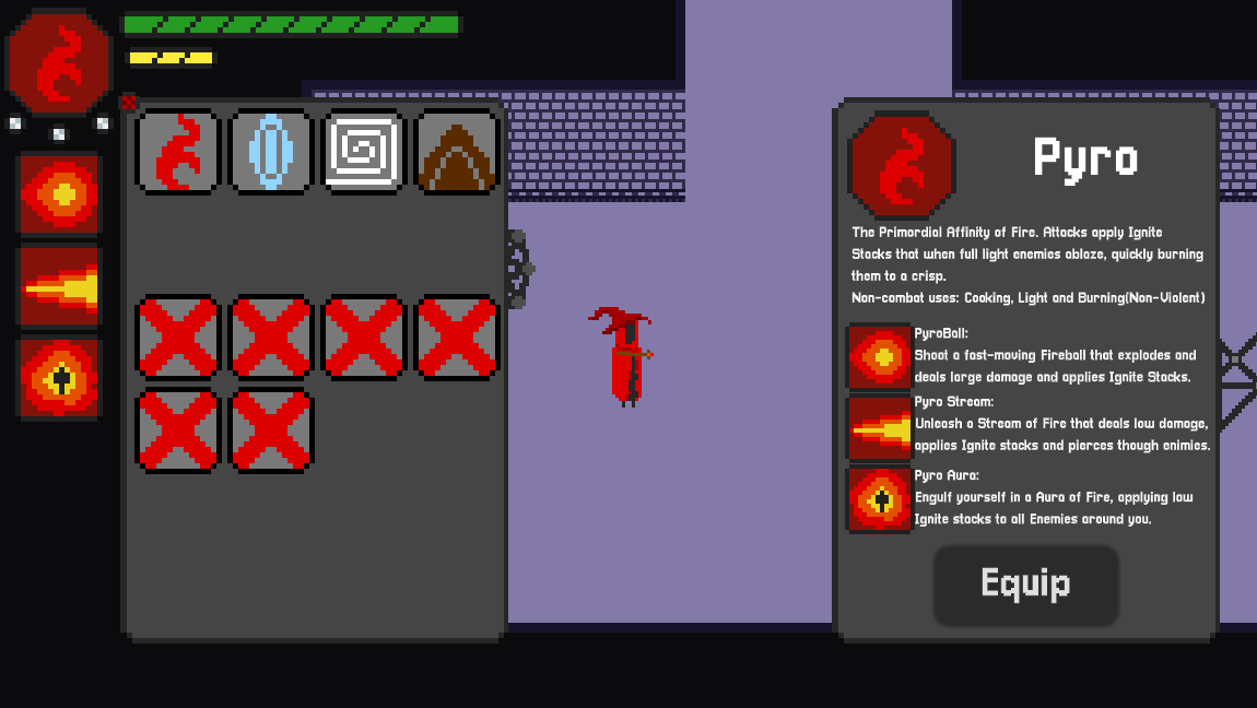 But anyway! The idea for the game is you are a Wizard trying to learn/collect "Affinities" which are like magic classes and you are able to combine Affinities together to make new ones. In the Demo there is 4 "Basic", 6 "Combo" Affinities and a Dungeon to go though.